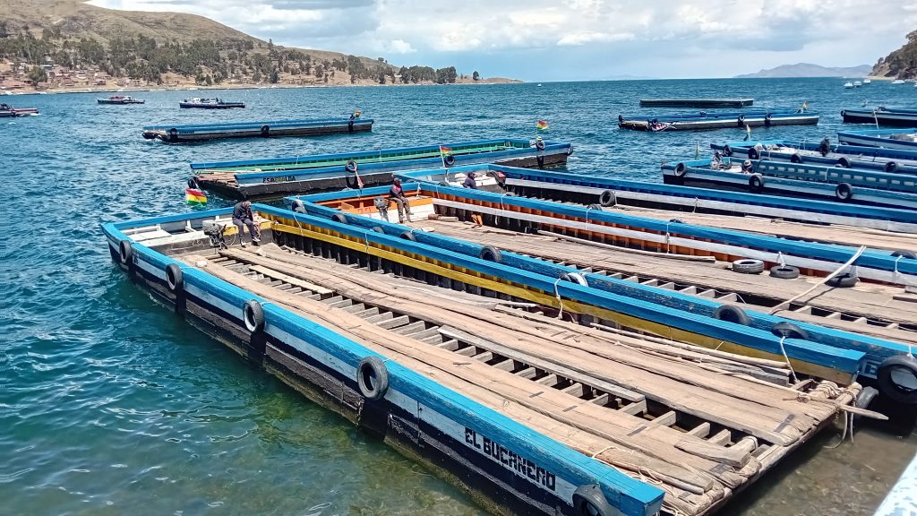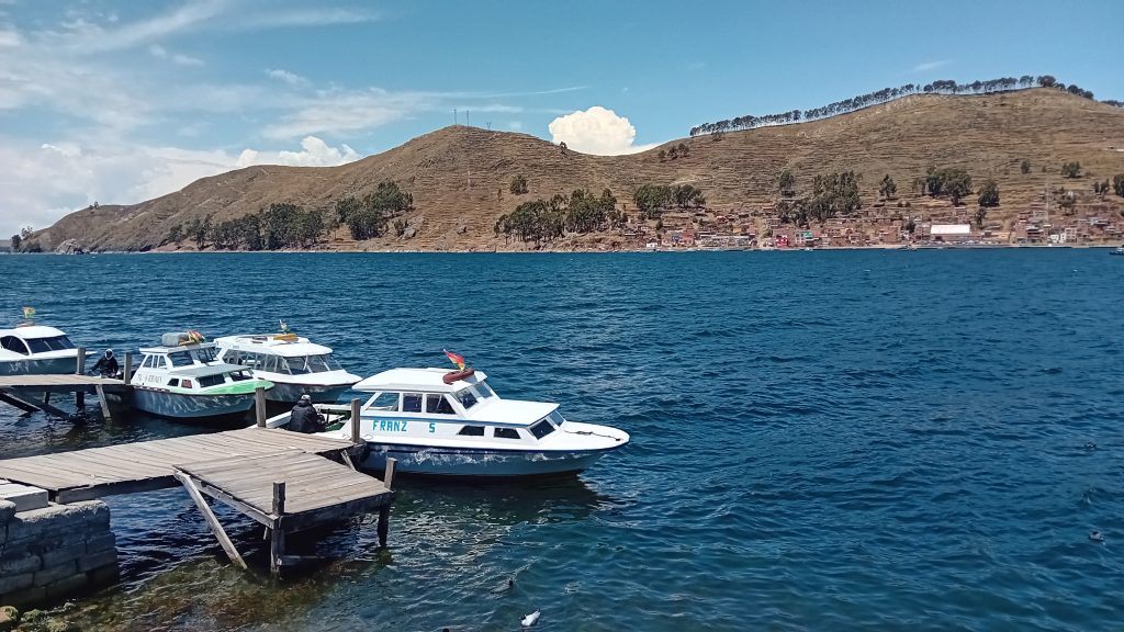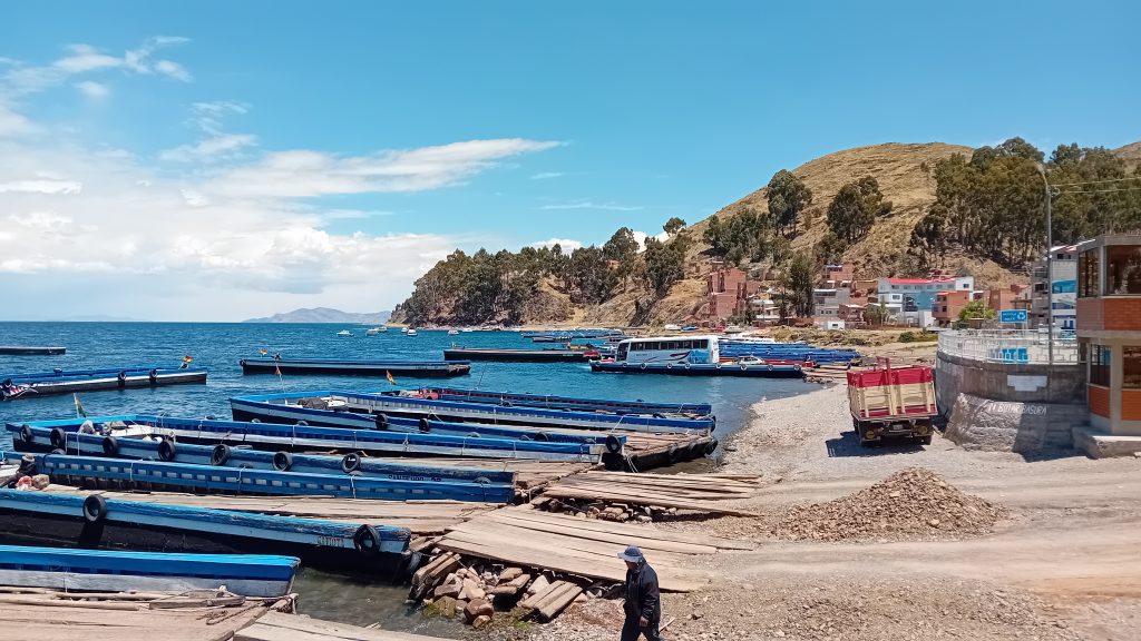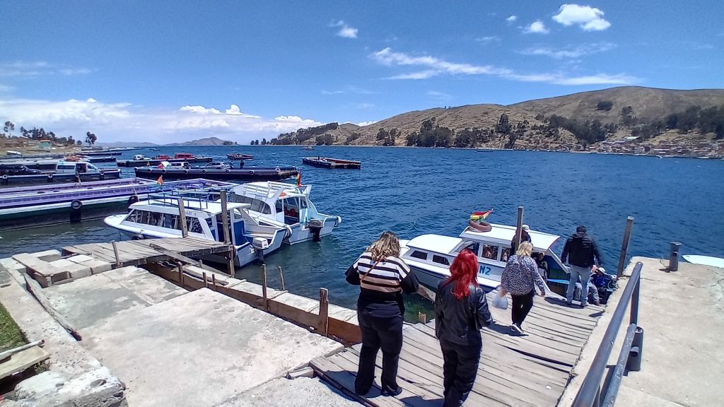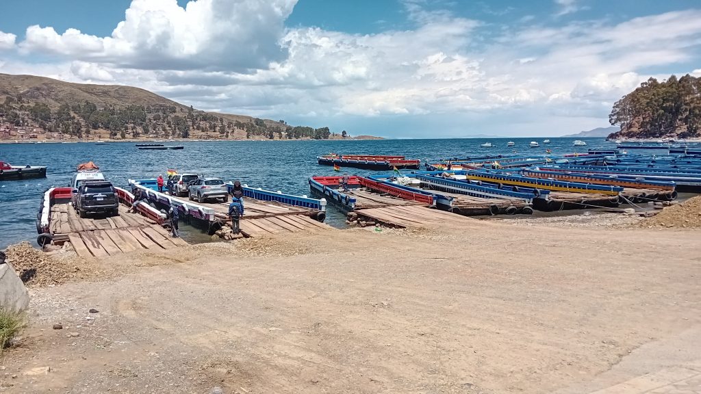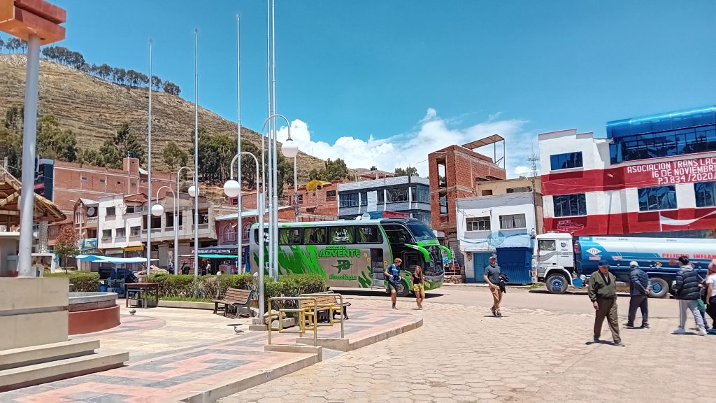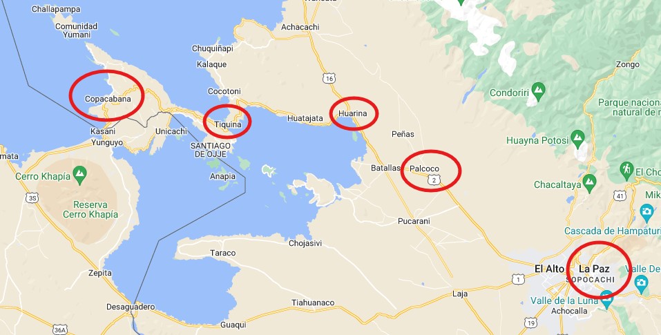 Départ en bus régulier de La Paz pour la petite ville de Copacabana sur la rive du lac Titicaca à 3841 mètres d’altitude. Sur la Ruta Nacional 2, nous traversons les petites agglomérations sur l’Altiplano jusqu’à Tiquina où nous devons effectuer un transfert en bateau dans le détroit entre San Pablo de Tiquina et San Pedro de Tiquina puis pour continuer avec le bus jusqu'à des altitudes dépassant les 4000 mètres jusqu’à la ville de Copacabana et ses 6000 habitants environs, point de départ pour les excursions sur le lac Titicaca.