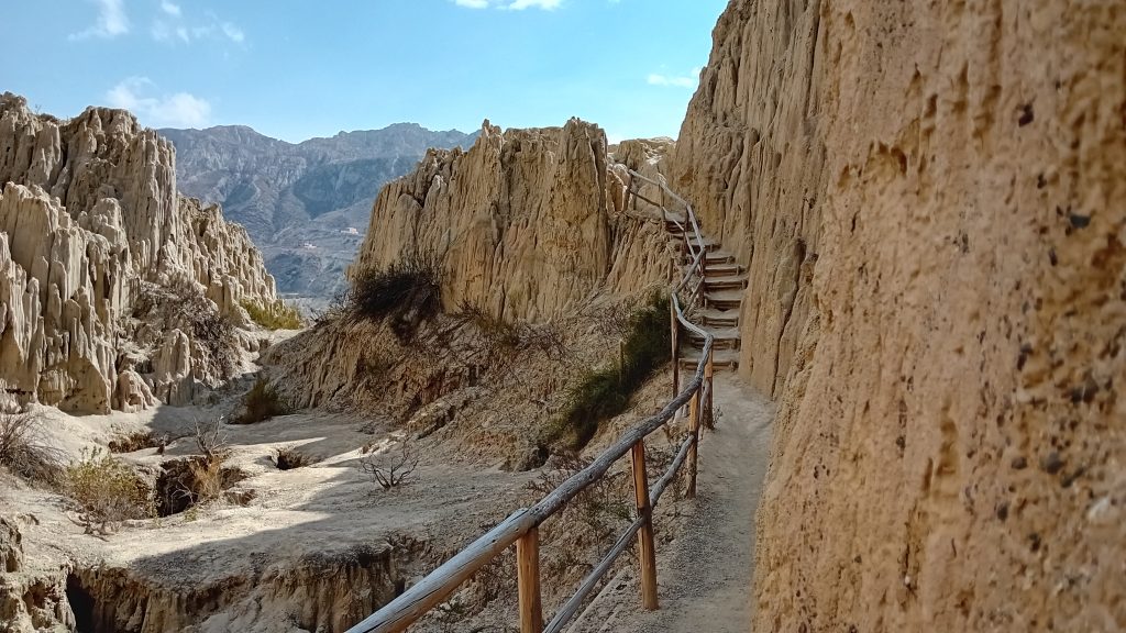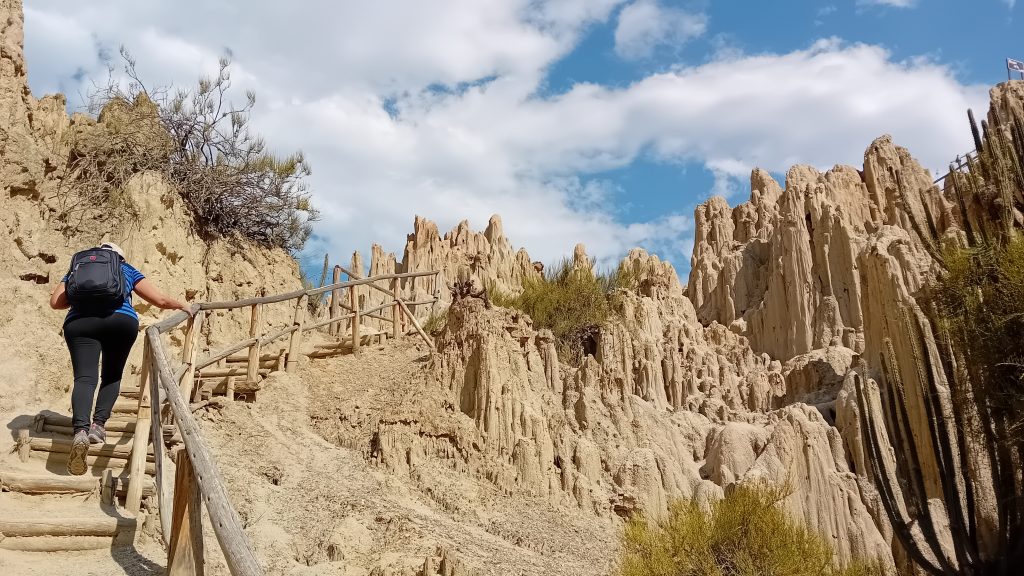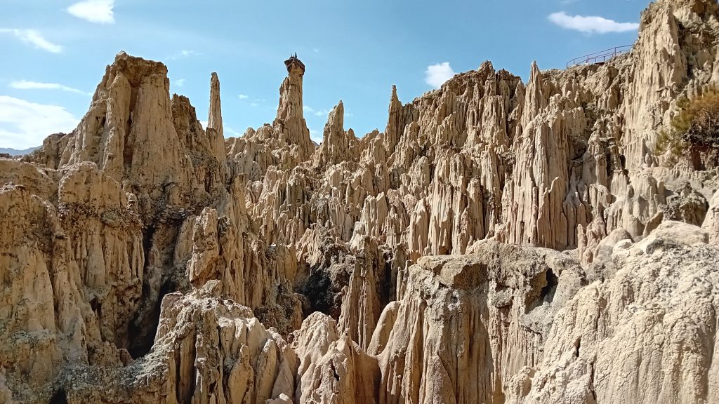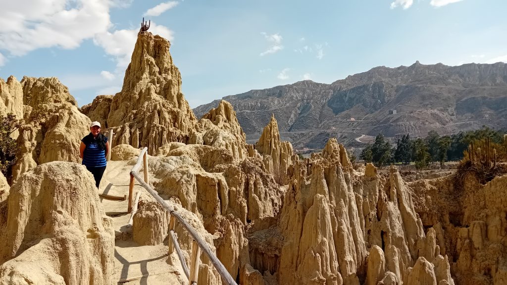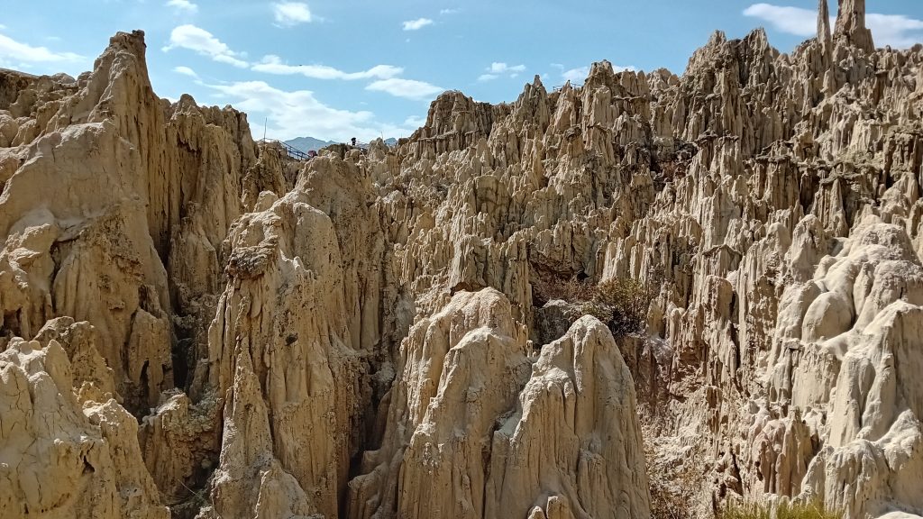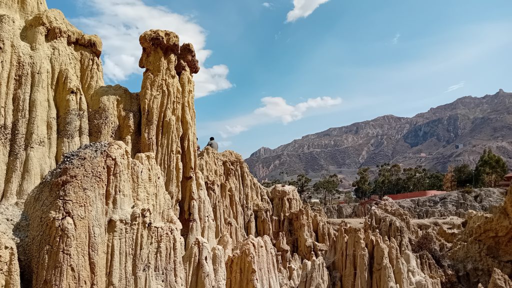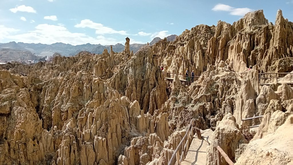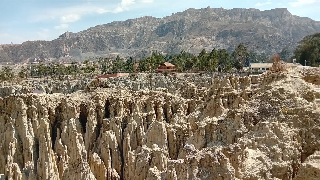 La vallée de la Lune se trouve à environ 10 km au sud du centre de La Paz. Cette formation est due à l'érosion de la partie supérieure d'une montagne. Le sol composé de grès et d'argile a été érodé pendant des milliers d'années par l'eau et les vents pour donner forme à des tours et des cratères, ce qui amena l'astronaute Neil Armstrong, lors de son séjour à La Paz en 1969, à nommer la colline " Valle de la Luna".