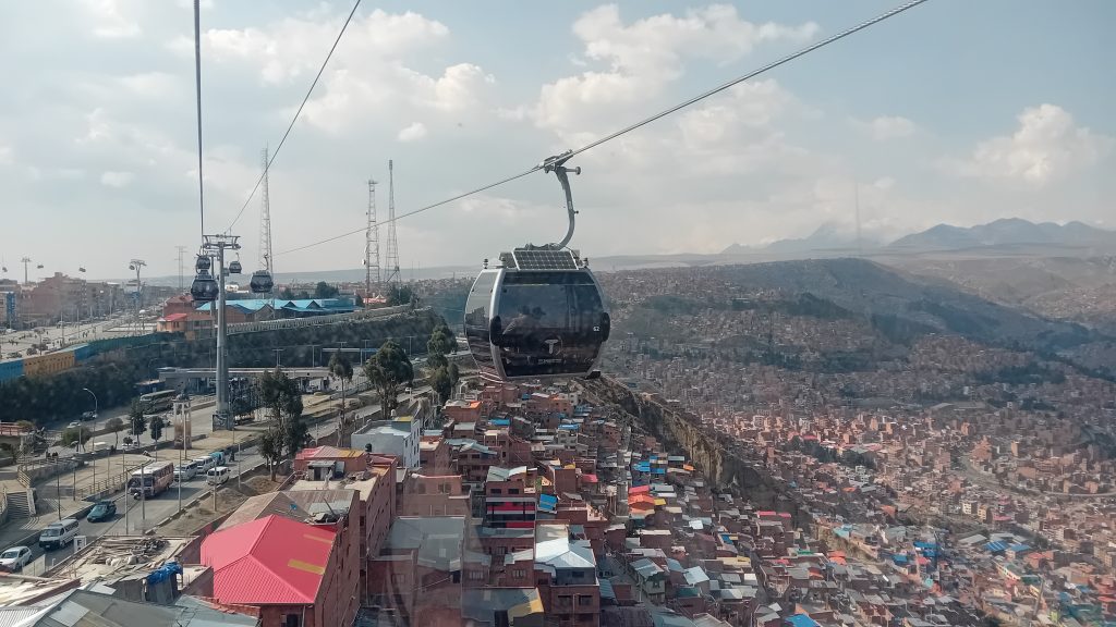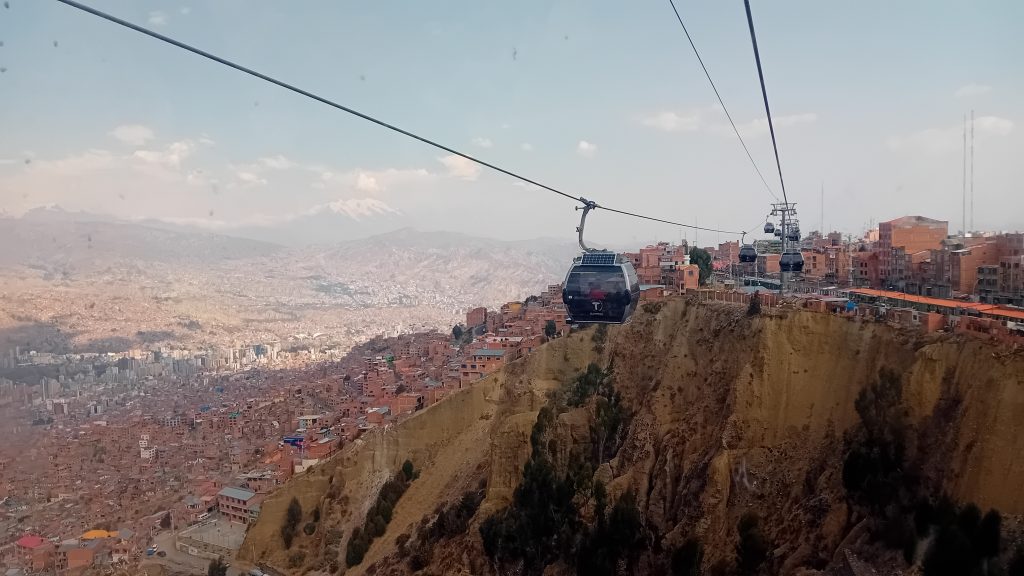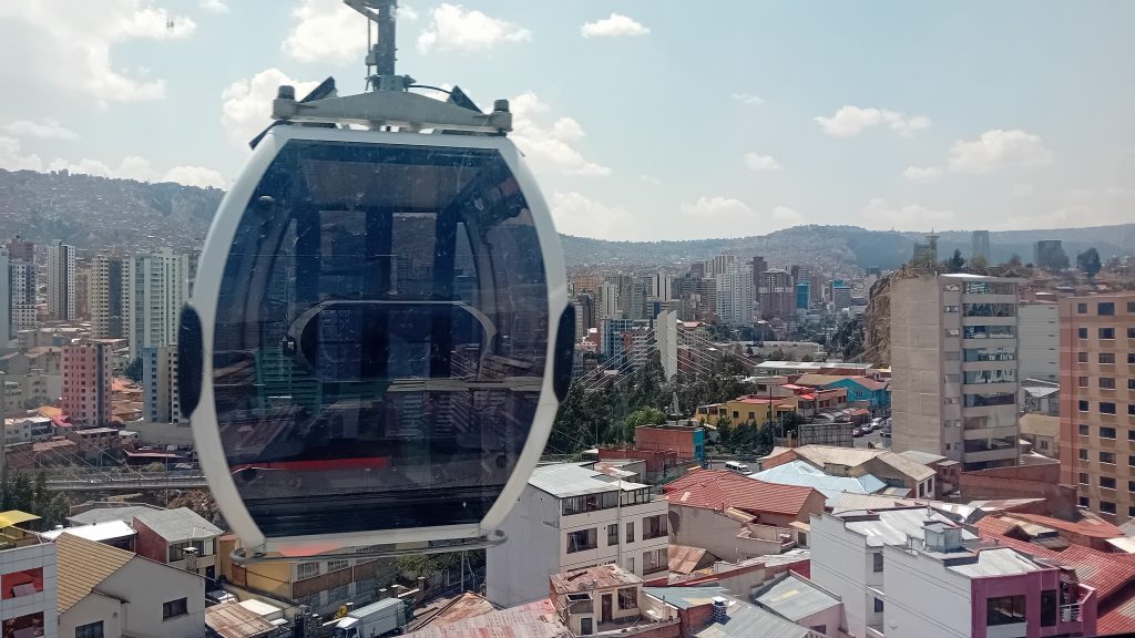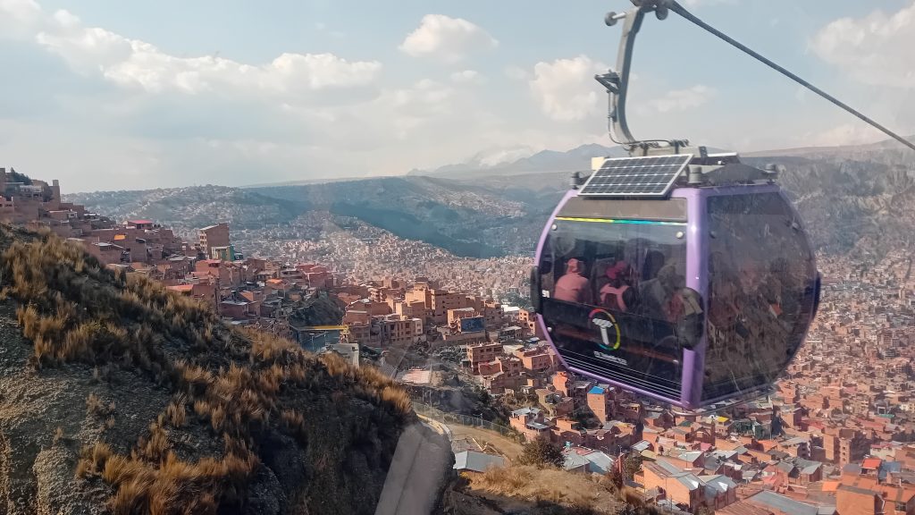 La Paz - El Alto - Mi Teleférico 3600-4100 m La capitale administrative et le siège du gouvernement, avec ses 3 municipalités, compte 2,3 millions d’habitants. La meilleure solution pour se déplacer et pour visiter la ville et les hauteurs reste le transport urbain par câble « Mi Teleférico », le plus long et le plus haut du monde entre 3300 mètres et 4061 mètres d’altitude, avec 10 lignes de télécabines très modernes réalisées entre 2014 et 2019 sur La Paz et El Alto.