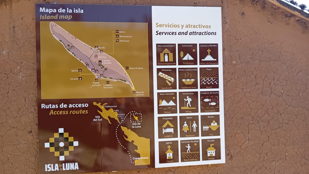 Il y a de nombreux sentiers de randonnées entre les villages qui permettent de traversée l'île du nord au sud mais également de visiter différentes ruines incas. Une randonnée facile permet de rejoindre le point culminant de l'île, le Cerro Palla Khasa.